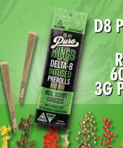 The Puro KINGS Delta 8 Infused Pre-Rolls are more than just convenient—they are artfully designed for sensory refinement and cannabinoid harmony. Each pre-roll provides a robust yet smooth journey through meticulously infused cannabinoids and flavorful strains—all at a standout value.